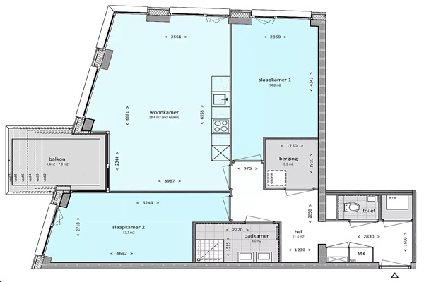 Voor de kookliefhebber is dit appartement een waar genoegen. De moderne leef keuken is compleet uitgerust met hoogwaardige inbouwapparatuur, waaronder een inductiekookplaat met afzuigkap, combimagnetron, vaatwasser en koel-vriescombinatie. Alles is aanwezig om elke dag met plezier te koken. Stijlvolle badkamer & separaat toilet De badkamer is modern en strak afgewerkt met een ruime inloopdouche, wastafel met spiegel en eigentijdse details. Daarnaast is er een separaat toilet aanwezig, comfortabel en praktisch in gebruik. Het royale balkon, gelegen op het noordoosten, is de ideale plek om de dag ontspannen te beginnen met een kop koffie of juist af te sluiten met uitzicht op de dynamische skyline van Den Haag.