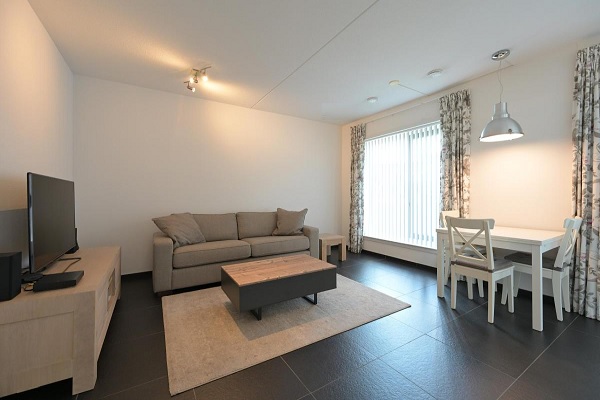 INDELING Via een verzorgde, afgesloten entree met brievenbussen en bellentableau bereik je via een gemeenschappelijk hal het appartement op de begane grond. Vanuit deze hal is er ook toegang (eventueel met de lift) tot de eigen berging en parkeerplaats in de kelder. Het appartement is licht en praktisch ingedeeld. De royale woonkamer biedt een prachtig uitzicht en loopt naadloos over in de half-open keuken, die is voorzien van moderne inbouwapparatuur zoals een afzuigkap, elektrische kookplaat, combi-oven/magnetron, vaatwasser en koelkast. Vanuit de hal zijn de twee slaapkamers bereikbaar, evenals de volledig betegelde badkamer met een douche, een wastafel en een toilet. In de inpandige berging is ruimte voor de wasapparatuur en het warmte-terug-win-systeem. Het gehele appartement is afgewerkt met een antraciet tegelvloer en vloerverwarming, die per kamer afzonderlijk regelbaar is voor optimaal comfort.