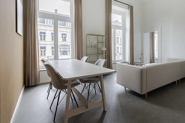 STUDENTEN NIET TOEGESTAAN INDELING Statige entree met de nodige grandeur geeft toegang tot het ruime trappenhuis. Eigen voordeur geeft toegang tot het warm en sfeervol appartement, bestaande uit een woonkamer met open keuken in hoekopstelling, ruime toiletruimte met was- droogcombinatie, aparte slaapkamer met badkamer ensuite met schuifdeur. Appartement is onder andere voorzien van bank met chaise longue, eettafel met 4 stoelen, wandrek, garderobekasten, 2 persoons boxspring bed met textielpakket. Géén studenten toegestaan.