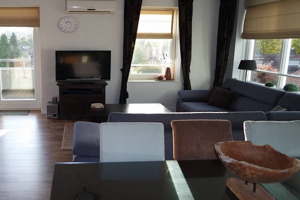 Indeling: Entree met brievenbussen en videofoon. Afgesloten centrale hal met lift en trappenhuis. Toegang tot parkeergarage, waarin zich tevens de individuele bergingen bevinden. Entree in de hal met sfeervolle laminaat vloer en toegang tot alle vertrekken. Ruime woonkamer met veel lichtinval en met toegang tot enorm dakterras van ca. 50 m². Keuken voorzien van de volgende apparatuur: gaskookplaat, RVS-schouwkap, combi oven met magnetron, vaatwasser, koelkast en vriezer. Separate inpandige berging met wasmachine en droger. Slaapkamer 1 van ca. 12 m² voorzien van inbouwkasten. Slaapkamer 2 van ca. 6 m². Separaat toilet met fonteintje. Badkamer voorzien van ligbad met thermostaatkraan, douche met thermostaatkraan en wastafel. Het appartement heeft de beschikking over een eigen berging en parkeerplaats.