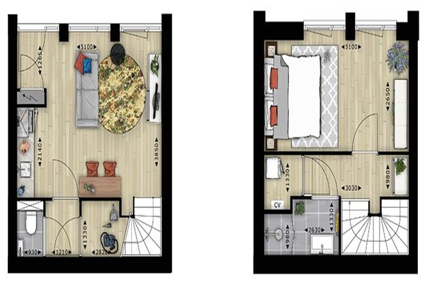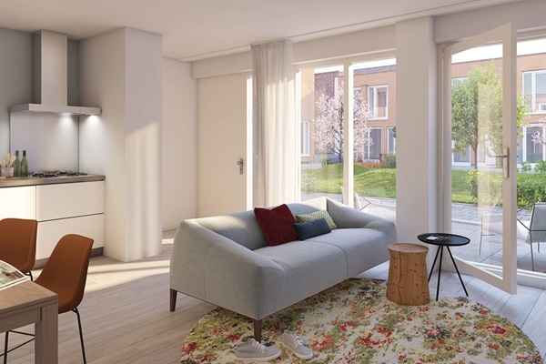 Indeling: Compacte stijlvolle living met grote glazen pui, moderne open keuken voorzien van inbouwapparatuur zoals 4 pits kooktoestel, koelkast, combi magnetron en vaatwasser. Daarnaast is er een apart toilet met fontein en kleine berging aanwezig. Via de vaste trap bereik je de 1e verdieping waar zich een compleet afgewerkte badkamer met inloopdouche, een royale slaapkamer en de stookruimte bevindt.