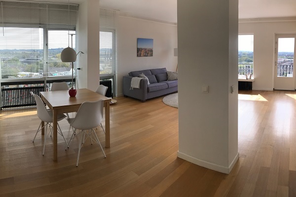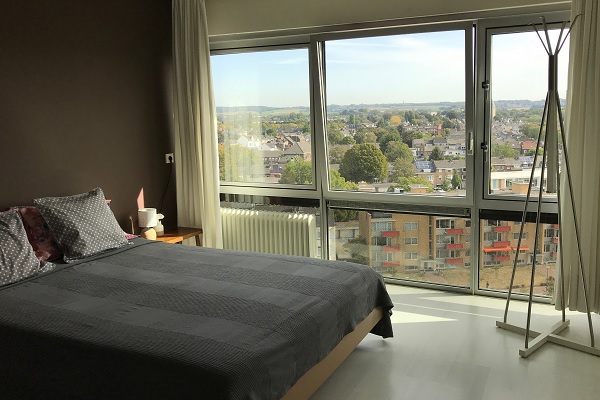 Deze woning is uitdrukkelijk niet bestemd voor woningdelers of studentenhuisvesting. De verhuurder behoudt zich het recht voor om huurkandidaten naar eigen inzicht te accepteren of af te wijzen, op basis van geschiktheid, financiële draagkracht en het totale huurprofiel Via de centrale hal, brengt de lift u naar de 10de verdieping alwaar dit appartement is gelegen. Bij binnenkomst treft u de hal (8m²) die toegang geeft tot de 2 slaapkamers (resp. 13m² en 9,5m²), het separaat gelegen gastentoilet, de badkamer (5m²) v.v. een ligbad, een inloopdouche met regenshower en een moderne wastafel. De woonkamer (35,5m²) geeft middels de grote glazen pui een schitterend uitzicht. De half open keuken (12m²) is af te sluiten en is v.v. alle moderne apparatuur zoals een heteluchtoven, een magnetron, een vaatwasser, een combinatie ijskast-vriezer, een ijskast en keramische kookplaat. Vanuit de keuken of woonkamer kunt u het balkon (10m.²), dat op het Zuiden is gelegen, betreden. *Volledig gemeubileerd; *Balkon op het zuiden; *Luxe badkamer met ligbad en regendouche; *Parketvloer in woonkamer en hal; *Laminaatvloeren in beide slaapkamers; *Tegelvloeren in keuken en badkamer;