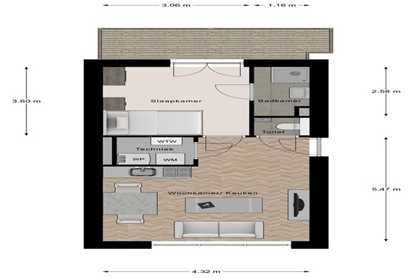 Bij binnenkomst vanuit de gemeenschappelijke ruimte betreed je de lichte woonkamer met open keuken. Deze leefruimte biedt alle comfort voor dagelijks wonen en is uitgerust met een keukenopstelling voorzien van een inductiekookplaat, koelkast, afzuigkap. Voor een oven/magnetron is een aansluitpunt aanwezig. De slaapkamer bevindt zich aan de achterzijde van het appartement en geeft functioneel ruimte aan een bed tot 1,40m breed. Vanuit de slaapkamer heb je directe toegang tot het balkon of tuin, waar je heerlijk buiten kunt zitten. De appartementen op de begane grond gelegen hebben beschikking over een volledig verharde achter- en voortuin. De appartementen op de eerste verdieping hebben beschikking over een balkon. De badkamer is bereikbaar vanuit de slaapkamer en is efficiënt ingedeeld. Deze ruimte beschikt over een douche met douchestang en een wastafel met spiegel. Het separate toilet is keurig afgewerkt en toegankelijk vanuit de woonkamer. Een aparte technische ruimte biedt plaats aan het boilervat, WTW-installatie en de wasmachine aansluiting. Daarnaast beschikt ieder appartement over een eigen externe berging, ideaal voor het stallen van fietsen of het opbergen van extra spullen. Deze staan aan de achterzijde van het complex en zijn te bereiken via de achteruitgang van de algemene ruimte.