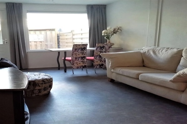 Gemeubileerde 2 kamer etage op de begane grond met tuin. Entree, middenhal met toilet en badkamer. Doorloop naar de woonkamer. Deur naar de achtertuin. Keuken met gaskookplaat, combimagnetron, koelkast, afzuigkap en wasmachine. Badkamer met douche en wastafel. Slaapkamer met tweepersoonsbed diverse kasten en een bureau. Berging in achtertuin voor stallen van een fiets. maximaal 2 person