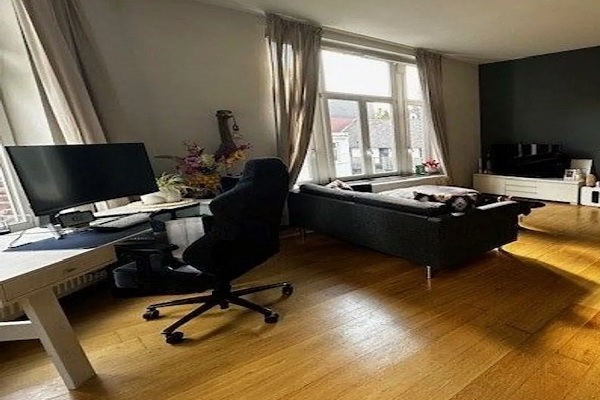 NIET VOOR STUDENTEN INDELING Keurige entree met trappenhuis naar de diverse verdiepingen. Eigen entree appartement. Aan de rechterkant allereerst de slaapkamer (ca. 12m2) met tweepersoons bed en ruime garderobekast. Vervolgens de badkamer met douche met glazen wand, wastafel en hangend toilet. Mooie ruime zonnige woonkamer (ca.33m2) met keuken en wand met apparatuur en voldoende opbergmogelijkheid. Verder een kleine bijkeuken met eigen cv-installatie en wasmachine.