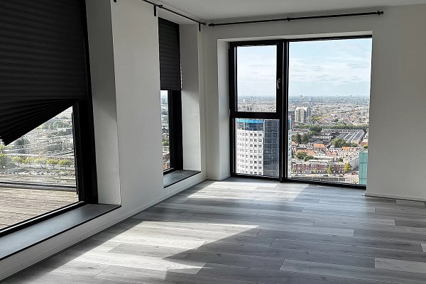 Wonen met je hoofd in de wolken? Dit moderne 4-kamerappartement van circa 107 m² ligt op de 23e verdieping van The Roofs in hartje Den Haag en biedt een adembenemend uitzicht over de stad. De ruime woonkamer met open keuken is het hart van de woning. De keuken is compleet uitgerust met hoogwaardige inbouwapparatuur – een inductiekookplaat met afzuigkap, combimagnetron, vaatwasser en koel-vriescombinatie. Een ideale plek voor wie graag kookt en samenkomt met vrienden of familie. De badkamer is stijlvol afgewerkt en voorzien van een ruime douche, ligbad, wastafel met spiegel en toilet. Daarnaast beschikt het appartement over een separaat tweede toilet. Voor dit appartement geldt een verplichte afname van warmte, koeling en warm tapwater via Eteck.