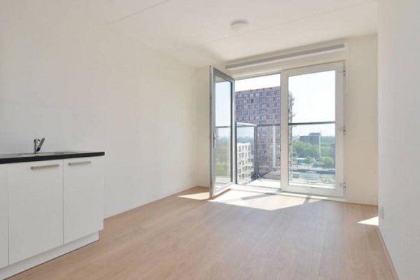 Let op: Alleen geschikt voor 1 student! Het appartementencomplex met totaal 116 woningen, telt 9 etages, verdeeld onder verschillende types. Op de begane grond is de hoofdentree van het wooncomplex met bellentableau, videocom en brievenbus. Via het trappenhuis en/of lift komt u bij de eigen voordeur en loopt u de fantastische woonruimte binnen. Deze woningen hebben een fraaie vloer. De ruimte is rechthoekig, zodat deze geheel naar wens ingericht kan worden! Het woonoppervlak wordt ‘’semi’’ gescheiden door een wand zodat u een heerlijke lounge kunt creëren en het slaapgedeelte apart kunt inrichten! De open keuken is uiterst modern, heeft een groot aanrechtblad en een gaskookplaat met daarboven een fraai afzuiger. Daarnaast kun je gebruik maken van veel kastjes en lades, een middelgrote koelkast met vriesvakje, vaatwasser en een combi magnetron/oven! De badkamer is voorzien van een zwevend toilet, een wastafel met spiegel en een inloopdouche. In de hal is er een kleine berging waar uw eigen cv ketel is geïnstalleerd en waar nog opbergruimte is!