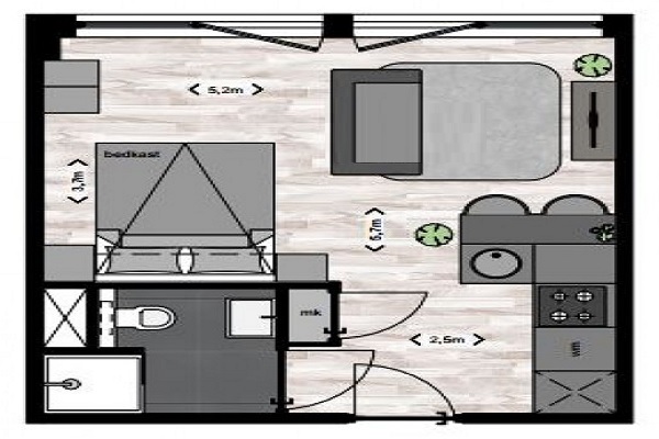 De entree van het complex Randhoeve Houten ligt aan de Randhoeve in het centrum van Houten, direct naast het NS station (10 treinminuten van Utrecht Centraal). Bij binnenkomst zie je natuurlijk de traditionele postkasten maar ook de Bringme Box. Met de Bringme Box kun je je online bestelde pakje gewoon laten thuisbezorgen zonder dat je thuis bent! Het complex is bereikbaar via een deur voorzien van een video-intercom: zo kun je zien wie er voor de deur staat. Woon je op één van de verdiepingen kies dan in de hal tussen de lift of gezond omhooglopen via de trap. Je huurt de studio volledig gestoffeerd. Er ligt al een PVC-vloer, de wanden zijn voorzien van scan behang, er zijn twee gordijnrails aangebracht waarvan één al is voorzien van in-between gordijnen en je hoeft geen lampen op te hangen want in de plafonds is al LED verlichting aangebracht. Er is zelfs gedacht aan schilderijrails zodat je niet zelf gaten hoeft te gaan boren. Als je binnenkomt heb je een nette L-vormige hoogglans keuken met koel-vriescombinatie, keramische kookplaat, combimagnetron, vaatwasser (45cm) en afzuigkap. Onder het aanrechtblad is ook een aansluiting en afvoer voor een wasmachine gemaakt. Aan de korte kant van de keuken kun je zitten. Zo woon je super effectief in deze studio. De badkamer is voorzien van zwevend toilet, douche met douchegarnituur en douchescherm. Alle zijn voorzien van een airconditioningssysteem waarmee je op energiezuinige wijze je woonruimte kunt verwarmen, koelen en ventileren.