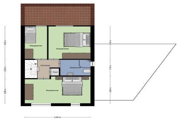 Hal met garderobe en meterkast. Aan de voorzijde is de keuken gelegen. De hoekvormige keuken heeft is luxe van uitvoering en beschikt over een vaatwasser, 4-pits gaskookplaat, afzuigkap, oven, magnetron en koelkast. Aansluitend aan de keuken is een ruimte gelegen welke perfect is voor een thuiswerkplek. Hier is tevens een ruimte gelegen met de aansluitingen voor de wasmachine. De woonkamer, aan de achterzijde gelegen, heeft zicht op de achtertuin. De woonkamer geniet genoeg licht door de grote raampartijen. Het portaal dat bereikbaar is vanuit de woonkamer heeft toegang tot de woonkamer, de geheel betegelde toiletruimte met wandcloset en fonteintje en de trapopgang naar de eerste verdieping. Overloop met toegang tot de 3 ruime slaapkamers, badkamer. De geheel betegelde badkamer is voorzien van een douche, vaste wastafel en mechanische ventilatie. Deze verdieping is voorzien van een zeer ruime extra slaapkamer. De ruime achtertuin is gelegen op het zuidwesten en voorzien van sierbestrating, borders, tuinhuis en een terras met overkapping ter plaatse van de achtergevel. Het terras is voorzien van een overkapping met inbouwverlichting. De tuin is op zonzijde gelegen en biedt toegang tot zowel de woonkamer als de extra kamer.