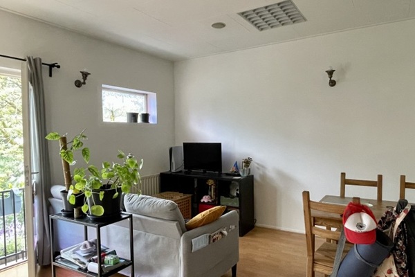 Indeling: Gemeenschappelijke trapopgang naar de 1ste etage. Woonkamer met open keuken, ruime slaapkamer en badkamer. De keuken is open en is gesitueerd in de woonkamer en is voorzien van een oven, kookplaat en wasem kap. Hier vind je ook de aansluiting voor en wasmachine. De badkamer is voorzien van inloop douche, wastafel en toilet.
