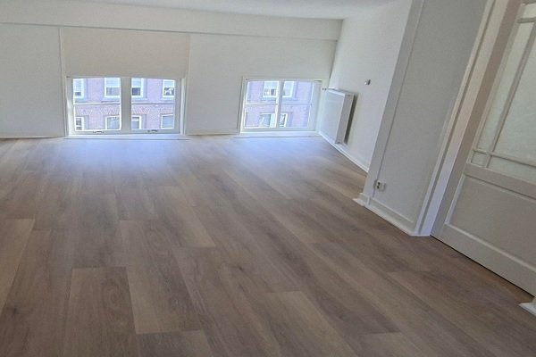 Woningdelers welkom. Indeling; Gezamenlijke entree met trapopgang naar de eerste verdieping. Vanuit de overloop toegang tot de woning met trapopgang naar de tweede verdieping. Vanuit een centrale hal bereikt u de ruimtes op deze verdieping. De woonkamer strekt zich van de voor-/ straatzijde tot aan achter. De woonkamer is voorzien van twee ramen en open keuken v.v. elektrisch fornuis, Americaanse koelkast, afzuigkap, vaatwasser, en voldoende kastruimte. Aan de achterzijde treft u een Frans balkon. De volledig betegelde badkamer is voorzien van douche, wastafel met meubel, toilet en de wasmachine aansluitingen. De eerste slaapkamer is gelegen naast de woonkamer aan de voorzijde en beschikt over een raam. Via een vaste trap bereikt u de derde verdieping met overloop en ruime slaapkamer met schuine wanden. Deze ruimte is behoorlijk groot en heerlijk licht door de grote raampartijen o.a. in de dakkapel.