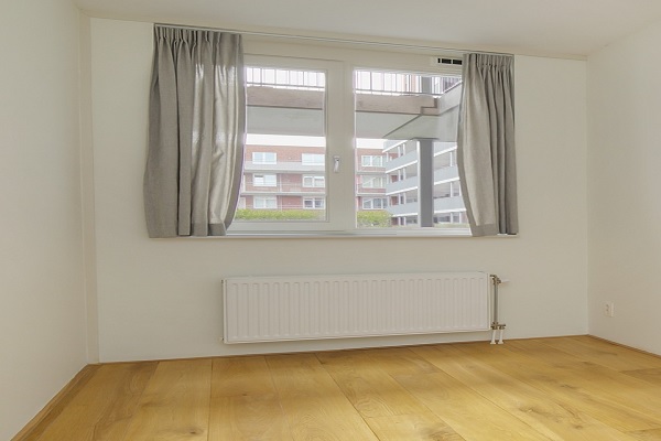 Indeling Toegang tot de woning via de centrale hal. Vanuit hier bereik je direct de badkamer, woonkamer en slaapkamer. Netjes afgewerkt met tegelvloer of laminaat. Ruime woonkamer aan de straatzijde of midden van het appartement. Aangrenzend eetgedeelte met eettafel en stoelen (zoals op foto). Moderne open keuken in hoekopstelling: Grijze kasten, rvs-handgrepen. Inbouwapparatuur (oven, kookplaat, afzuigkap). Spoelbak met luxe kraan. Frisgroene achterwand als kleuraccent. Aparte slaapkamer met bed. Geschikt voor tweepersoonsbed. Mogelijk ruimte voor kast of ladekast. Rustige ligging aan de achterzijde (grenzend aan terras) Moderne badkamer met: Inloopdouche (glaswand). Toilet. Dubbele wastafel met onderkast. Handdoekradiator. Strakke witte en grijze betegeling. Groot betegeld terras, deels overdekt Zithoek + eettafel (zoals op foto) Afgeschermd met matte glaswanden voor privacy. uitzicht op groene binnentuin van het wooncomplex. Perfect voor buiten zitten in alle seizoenen