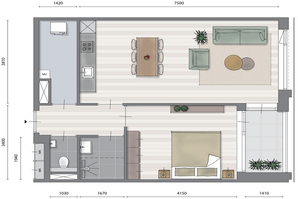 Geniet van een ruime woonkamer met een heerlijke buitenruimte van 4,4 m² in de vorm van een zonnige loggia. De perfecte plek om het buitenleven naar binnen te halen. De woonkamer beschikt over een gezellig zitgedeelte en een moderne open hoekkeuken, compleet met een witte Bruynzeel keuken, hoge kwaliteit en voorzien van luxe Siemens inbouwapparatuur. Ook de badkamer is een luxe oase in het wit, uitgerust met een Hansgrohe douchemengkraan, Villeroy&Boch wastafel en een prachtige ronde spiegel. Het toilet van Villeroy&Boch is eveneens in stijlvol wit. De slaapkamer beschikt tevens over een grote raampartij en grenst aan het balkon. Bij oplevering want de woning is al fraai afgewerkt met een lichte pvc vloer voorzien van vloerverwarming en gordijnrails die al gemonteerd zijn. Mis deze kans niet om in dit prachtige appartement te wonen!