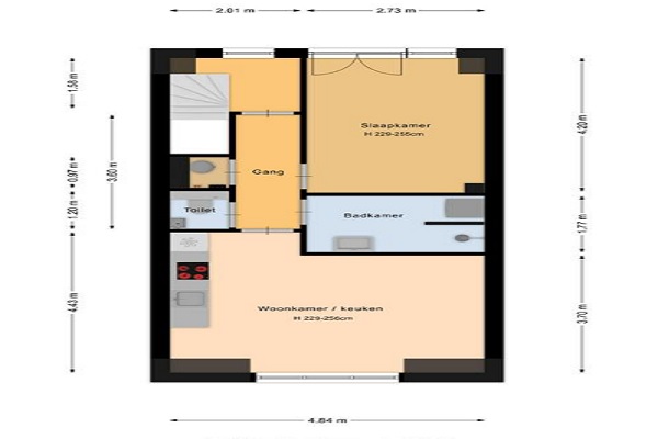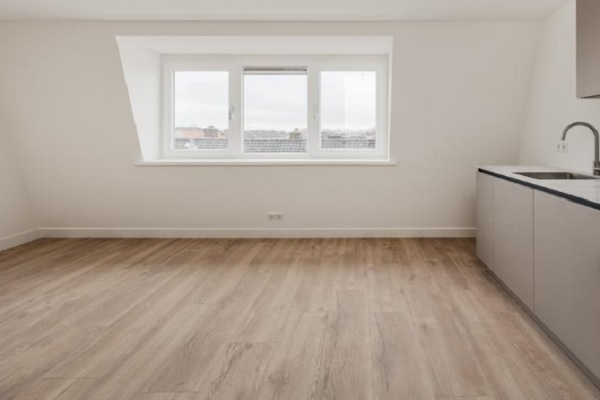 Indeling: Begane grond: entree eigen meterkast, toegang tot eigen berging, trap naar Tweede verdieping: gemeenschappelijke overloop, toegang tot eigen privéterras Derde verdieping: , gang, deur naar technische ruimte (groepenkast en zonneboiler), toilet, badkamer met inloopdouche, wastafel en ruimte voor wasmachine/drogeraansluiting, deur naar heerlijke lichte woonkamer aan de voorzijde en open keuken met combi oven, vaatwasser en elektrische kookplaat, lichte slaapkamer aan achterzijde. Het appartement is voorzien van gordijnen en verlichting.