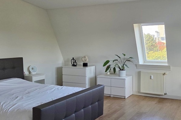 Indeling Gang, gezamenlijke wasruimte met wasmachine en wasdroger, berging Centrale entree met trappenhuis dat toegang geeft tot de bovengelegen appartementen en de wasruimte en de bergingen in het souterrain Entree appartement, badkamer met douche, wastafel, toilet (hang) en extra fonteintje, royale lichte woonkamer, open keuken met inbouwapparatuur waaronder een vaatwasser, inductiekookplaat, afzuigkap en een koelkast, grote slaapkamer