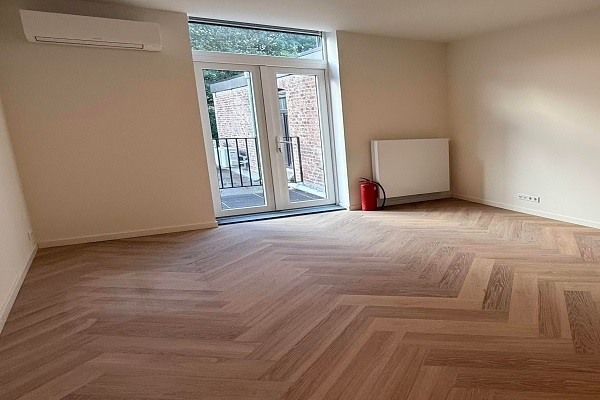 Geen vergunning voor studenten! U komt binnen in de ruime woonkamer met airco en een open keuken alwaar de warme visgraat vloer je tegenmoet lacht. De keuken is modern uitgevoerd en voorzien van alle installaties (vaatwasser, inductiekookplaat, afzuigkap, koelvriescombinatie). Vanuit de woonkamer/keuken en de openslaande deuren kunt u heerlijk genieten van het dakterras op het zuiden. Vanuit de woonkamer kunt u naar slaapkamer die tevens voorzien is van een hoek waar u een walk incloset of bureau kunt zetten. Badkamer is voorzien van een wasmachine aansluiting, toilet, inloopdouche, wastafel met spiegel en spiegelverwarming en een design handdoekradiator.