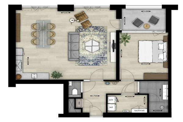 Waar de badkamer is voorzien van smaakvol sanitair van Villeroy & Boch, is de moderne keuken uitgerust met alle inbouwapparatuur om het koken nóg leuker te maken. Op de vloer ligt een luxe PVC vloer met houtlook en de wanden zijn reeds afgewerkt én geschilderd. Laten we ook de aanwezige internetaansluiting in zowel de woon- als slaapkamer niet vergeten. Je kunt dus direct van start met het leukste: het decoreren van deze absolute droomwoning! De keukens van de appartementen zijn met alle denkbare apparatuur opgeleverd – koken was nog nooit zo ontspannen! Probeer de lekkerste recepten uit op een fijn 4-pits kooktoestel, houd alle ingrediënten koel en vers in de ruime koelkast en warm iets gemakkelijk op in de ruime combi magnetron. Heerlijk gegeten? Dan is de vuile vaat zo weg dankzij een praktische vaatwasser voorzien van de laatste technieken. Bon apétit! Ook de vloeren in jouw nieuwe huur appartement hebben we reeds voorzien van een prachtige én praktische PVC-vloer met een moderne houtlook. Het PVC is bijzonder handig in het onderhoud, maar geeft tegelijkertijd de luxe uitstraling van een houten vloer. Sterker nog: hij is niet van een echt exemplaar te onderscheiden. Wat een luxe! Ook de badkamer is luxe afgewerkt met smaakvol sanitair van Villeroy & Boch. ’s Morgens wakker worden en je tanden poetsen aan de wastafel met onderkast, handig voor het opbergen van toiletspullen. Tijdens een slaperig moment oppassen dat je je voet stoot bij het betreden van de douche? Niet nodig dankzij de inloopdouche met vlakke vloer én moderne drain. Alles oogt daarbij stijlvol en modern – helemaal van deze tijd!