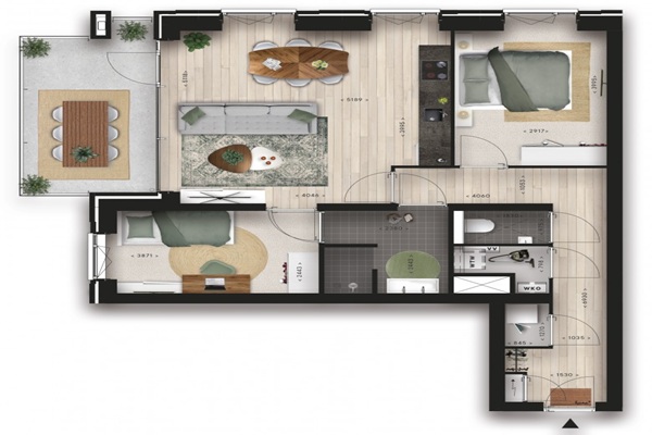 Dit luxe 3-kamer appartement bevindt zich op de begane grond van het complex. De rechte witte keuken is voorzien van koel/vriescombinatie, oven met magnetronfunctie, inductie kookplaat en een vaatwasser! De moderne en comfortabele badkamer is voorzien van een inloopdouche en een dubbele wastafel met spiegel. Het zwevende toilet met fontein bevindt zich in een aparte ruimte. Het appartement heeft een groot balkon die via de riante woonkamer te betreden is. Het appartement beschikt over een ruime binnen berging.