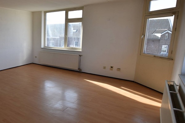 Eén slaapkamer appartement met ruime woonkamer (5,16x4,17) en open keuken(blok) (4m2). Er is één slaapkamer (2,80 x 3,59) en badkamer met douche, toilet, wastafel en wasmachine aansluiting. In het souterrain is een aparte berging,