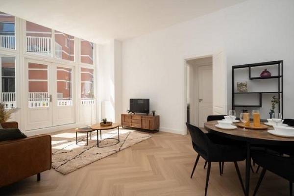Indeling: Via de zijkant van het gebouw leidt een trap naar de gezamenlijke entree. Eenmaal binnen bereik je via de voordeur dit prachtige appartement. De open keuken is een echte eyecatcher, met een luxe visgraat PVC-vloer en hoogwaardige inbouwapparatuur zoals een vaatwasser, inductiekookplaat, combi-oven/magnetron, koelkast met vriesvak en een stijlvolle afzuigkap. Het werkblad van zwart composiet geeft de keuken een luxe uitstraling. De royale en lichte woonkamer biedt ruimte voor zowel een gezellige zithoek als een grote eettafel. Dankzij de hoge plafonds en grote ramen baadt de ruimte in natuurlijk licht. Via dubbele deuren stap je op het riante, zonnige terras van bijna 10 m², perfect voor een ontspannen zomeravond met vrienden De ruime slaapkamer, eveneens gelegen aan de achterzijde, is licht en sfeervol. De moderne badkamer is afgewerkt met stijlvolle marmerlook tegels en voorzien van een luxe inloopdouche, een zwevend design toilet, een royale wastafel en een moderne spiegel. Achter de badkamer bevindt zich een aparte wasruimte met aansluitingen voor de wasmachine, evenals de opstelling van de boiler en mechanische ventilatie.