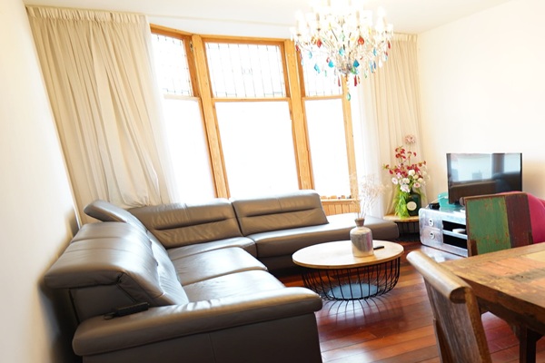 De woning beschikt over een grote woonkamer met open keuken, drie slaapkamers — elk met een eigen badkamer — en een prettige indeling die ideaal is voor drie studenten die samen comfortabel willen wonen. Woonoppervlakte ca. 75 m² Grote woonkamer met open keuken