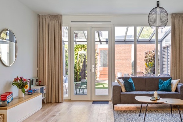 Bij binnenkomst valt direct de ruime en lichte woonkamer op, voorzien van grote raampartijen en een moderne vloer. De woonkamer loopt vloeiend over in de open keuken, die is uitgerust met hoogwaardige inbouwapparatuur, strakke kasten en een warm houten werkblad. De woonkamer biedt via openslaande deuren toegang tot de verzorgde tuin, waar je heerlijk kunt ontspannen of gezellig kunt borrelen met vrienden Op de bovenverdieping bevinden zich de slaapkamers en de moderne badkamer, afgewerkt met stijlvolle materialen en voorzien van een inloopdouche en wastafelmeubel