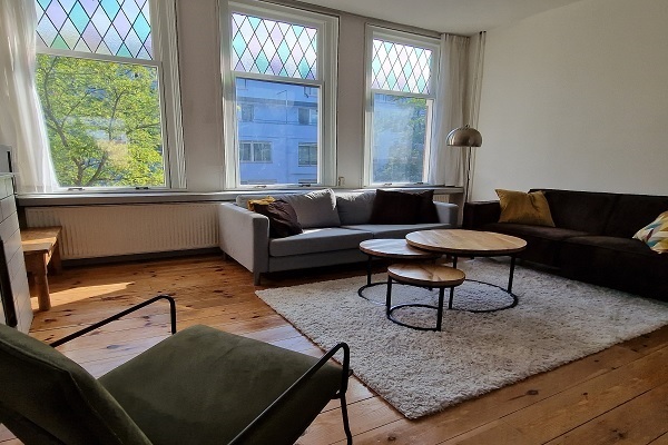Indeling: Via de houtentrap loopt u in 1 keer door naar de 2e verdieping. Hier aangekomen, hebt u de garderobe met aan de rechterkant, een toilet en een trap naar de 2e woonlaag. De L-vormige woonkamer bevindt zich aan de voorzijde en bereikt u via een tussenruimte dat voldoende gelegenheid biedt om te gebruiken als eetkamer of kantoorruimte. De prachtige grote ramen aan de voorzijde laten mooi daglicht binnen en zijn goed geluid- en warmte geïsoleerd! Aan de achterzijde bevindt zich een open keuken die is voorzien van alle gemakken waaronder een 5-pits kookgelegenheid met oven, een vaatwasser en koelkast. Vanuit het raam hebt u een vrij uitzicht op de omgeving en het balkon. Naast de keuken hebt u bovendien om een eettafel te plaatsen. Vanuit deze ruimte bereikt u het balkon waar u het ochtend en middaglicht ontvangt. Vanaf het balkon kijkt u uit de fraaie omliggende panden die in de verte te zien zijn. Via de houtentrap bereikt u de zolderetage met een fraaie balken constructie van het dak. Hier bevinden zich de 2 slaapkamers de badkamer met badkuip en een aparte douche cabine.Tevens is er een aparte 2e toilet. De gezellige slaapkamer met een ruime 2-persoonsbed bevindt zich aan de achterzijde en biedt toegang tot een klein balkon waar het heerlijk toeven is. De 2e slaapkamer bevindt zich aan de voorzijde. Het 2-persoonsbed bevindt zich op een verhoging. Eronder bevindt zich bergingsruimte dat bestemd is voor kleding en zaken die niet voor dagelijks gebruik nodig zijn. De fraaie tuimelramen maken het mogelijk om goed te kunnen ventileren. De ruime tussenruimte, tussen de 2 slaapkamers bieden de mogelijkheid om deze naar eigen wens in te richten.