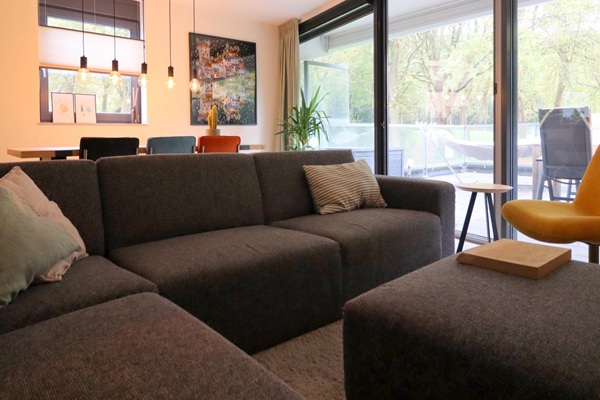 Indeling. Centrale entree. Binnenkomst in de hal, deze biedt toegang tot een berging met wasmachine, moderne badkamer met ligbad, toilet, douche en wastafel, ruime slaapkamer en de woonkamer met open keuken. De keuken is voorzien van een gezellige bar en alle gewenste inbouwapparatuur. Het ruime balkon is middels een schuifpui te bereiken en biedt, net zoals de woonkamer, prachtig uitzicht op het park.