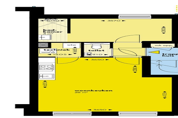Begane grond: via de begane grond biedt het gebouw toegang tot het trappenhuis. Hier bevindt zich tevens de gezamenlijke bergruimte. Het bevindt zich op de derde verdieping en is voorzien van een moderne badkamer met inloopdouche, een woonkamer met open keuken en een slaapkamer. De complete keuken is voorzien van een vaatwasser, koelkast, inductiekookplaat en afzuigkap.
