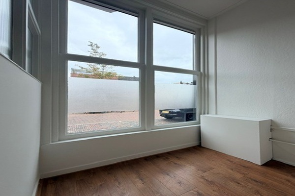 Indeling: U komt het pand binnen in een centrale hal. Vanuit hier zijn de bovenliggende appartementen en het appartement op de begane grond bereikbaar. Aan de voorzijde van het appartement zit een kleine kamer die ideaal ingericht zou kunnen worden als kantoor. Vanuit deze kamer heeft u een hele fijne lichtinval én een leuk uitzicht op de kade en het water. Aansluitend ligt de zeer ruime woonkamer met een prachtige schouw. Met een oppervlakte van ca. 34m² heeft u hier alle ruimte om een fijne zithoek en eethoek in te richten. De woonkamer is voorzien van een mooie houten vloer. Achter de woonkamer zit een eveneens grote kamer van ca. 32m². In deze kamer bevindt zich ook de badkamer die voorzien is van een douche en een wastafel. Dan loopt u door naar een hal met originele granito vloer. De gang biedt toegang tot het toilet en de keuken. De keuken is onlangs vernieuwd en is voorzien van een inductiekookplaat, afzuiger, combimagnetron, vaatwasser en koelkast. In de keuken is ook de opstelling voor een wasmachine en -droger. Geen woningdelers of studenten;