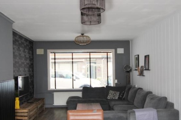 Indeling: Hal met trap naar de eerste verdieping en trap-/kelderkast, sfeervolle woonkamer met schuifpui, open keuken met modern keukenblok met inbouwapparatuur (keramische kookplaat, afzuigkap, combi-magnetron, vaatwasser, koelkast en diepvries),halletje met achterdeur, apart toilet, volledig betegelde badkamer met douche en wastafel en een betegelde binnentuin. Ruime overloop met vlizotrap naar de tweede verdieping, 2 slaapkamers waarvan 1 een hele ruime en een kleinere, er is nog een kamer die dient als inloopkast. Bergzolder.