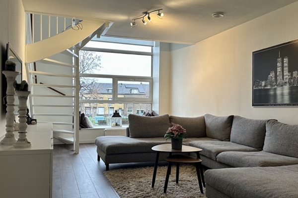 INDELING Afgesloten parkeergarage met eigen parkeerplaats. Ruime privé berging. Centrale hal, bellentableau, brievenbussen, trappenhuis en lift. Entree, hal en verdere toegang tot de ruime woonkeuken. Keuken voorzien van kwaliteitsapparatuur zoals: afzuigkap, 4 pits kookplaat, oven, vaatwasser, hoogmodel koelkast inclusief vriezer. Woonkamer bereikbaar via een trap in de keuken. Woonkamer met grote raampartijen die zorgen voor veel lichtinval. Gezellige zithoek voor het raam. Badkamer met ligbad, dubbele wastafel en wasmachine. Apart toilet. Slaapkamer 1 (master bedroom) biedt toegang tot het leuke gezellige balkon aan de achterzijde. Slaapkamer 2 kan gebruikt worden als kantoor of logeerkamer. Beschikbaar voor single of koppel.