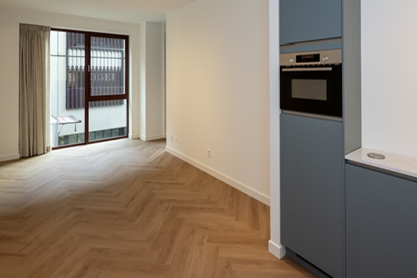 Indeling Via de entree kom je in de gang die toegang biedt tot alle vertrekken. Hier vind je een separaat toilet met wastafel en spiegel, en een ruime inpandige berging met aansluiting voor wasmachine en droger. De woonkamer is licht dankzij de grote ramen. Vanuit hier stap je direct het ruime balkon op om even te genieten van de buitenlucht. De open keuken is strak afgewerkt en volledig uitgerust met inbouwapparatuur: vaatwasser, combi-oven, inductiekookplaat, koelkast en voldoende kastruimte. De slaapkamer beschikt over een ingebouwde kastwand en eveneens grote ramen. De ensuite badkamer is modern ingericht met een dubbele wastafel met meubel, grote spiegel en inloopdouche.