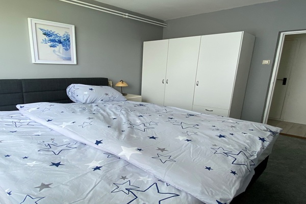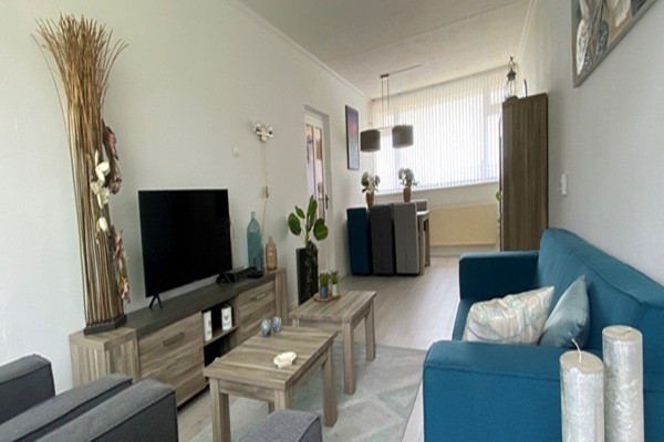 Keurig gemeubileerd 3-kamer appartement op de 5e verdieping in de woonwijk “Hoge Vucht”, nabij het winkelcentrum en de uitvalswegen. In het gehele appartement ligt een laminaatvloer. Indeling: entree met bergruimte Lichte woonkamer (8,45m x 3,80m) Slaapkamer (2,70 bij 3,59 m.) Masterbedroom (circa 2,70 m x 3,95 m.) Balkon (3,52 bij 1.30 m) grenzend aan de woonkamer, heerlijk in de ochtendzon, uitzicht over groen. Gesloten keuken (3,62 x 2,40 m.) met eenvoudig keukenblok, voorzien van kookplaat, vaatwasser, afzuigkap en koelkast. 2e Separaat toilet. Nette doucheruimte met douche en wastafel. In het souterrain bevindt zich een prive-berging. Gratis parkeren in de directe omgeving. Appartement is niet geschikt voor woningdelers;