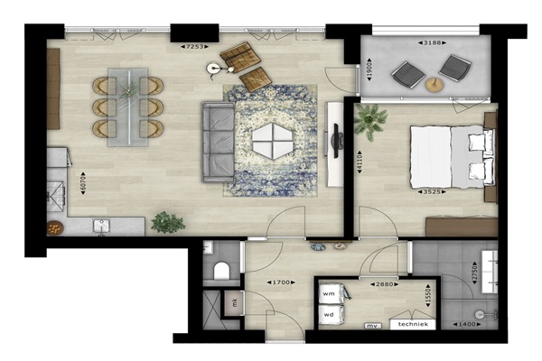 Waar de badkamer is voorzien van smaakvol sanitair van Villeroy & Boch, is de moderne keuken uitgerust met alle inbouwapparatuur om het koken nóg leuker te maken. Op de vloer ligt een luxe PVC vloer met houtlook en de wanden zijn reeds afgewerkt én geschilderd. Laten we ook de aanwezige internetaansluiting in zowel de woon- als slaapkamer niet vergeten. Je kunt dus direct van start met het leukste het decoreren van deze absolute droomwoning! De keukens van de appartementen zijn met alle denkbare apparatuur opgeleverd – koken was nog nooit zo ontspannen! Probeer de lekkerste recepten uit op een fijn 4-pits kooktoestel, houd alle ingrediënten koel en vers in de ruime koelkast en warm iets gemakkelijk op in de ruime combi magnetron. Heerlijk gegeten? Dan is de vuile vaat zo weg dankzij een praktische vaatwasser voorzien van de laatste technieken. Bon apétit! Ook de vloeren in jouw nieuwe huur appartement hebben we reeds voorzien van een prachtige én praktische PVC-vloer met een moderne houtlook. Het PVC is bijzonder handig in het onderhoud, maar geeft tegelijkertijd de luxe uitstraling van een houten vloer. Sterker nog: hij is niet van een echt exemplaar te onderscheiden. Wat een luxe! Ook de badkamer is luxe afgewerkt met smaakvol sanitair van Villeroy & Boch. ’s Morgens wakker worden en je tanden poetsen aan de wastafel met onderkast, handig voor het opbergen van toiletspullen. Tijdens een slaperig moment oppassen dat je je voet stoot bij het betreden van de douche? Niet nodig dankzij de inloopdouche met vlakke vloer én moderne drain. Alles oogt daarbij stijlvol en modern – helemaal van deze tijd!