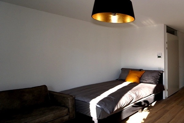 Indeling: Gedeelde entree met brievenbussen, bellentableau, lift en toegang tot de gezamenlijke tuin. De studio is uitgerust met hip meubilair, oa. een tweepersoonsbed, linnenkast, tafel, stoelen, TV. De open keuken is voorzien met een kooplaat, afzuigkap, koelkast en magnetron. De volledig betegelde badkamer is voorzien van een douche en wastafel met spiegel. De studio is geschikt voor 1 person.