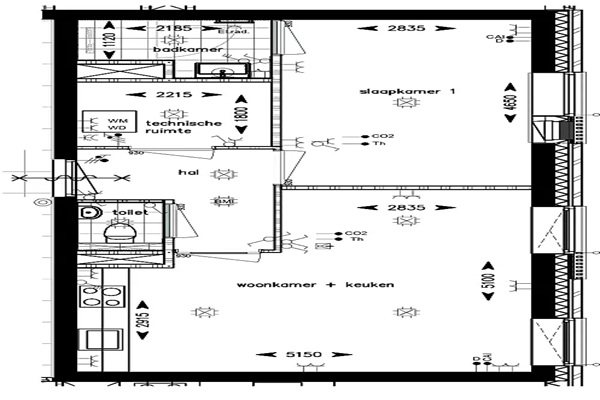 Bij binnenkomst kom je in een ruime hal die toegang biedt tot alle vertrekken. Direct aan de hal bevinden zich een toilet en een technische ruimte met aansluitingen voor wasmachine en droger. De woonkamer met open keuken vormt het hart van de woning. Dankzij de grote ramen valt er veel natuurlijk licht binnen, wat zorgt voor een open en uitnodigende sfeer. De keuken is modern ingericht en biedt voldoende ruimte om prettig te koken en te genieten van gezellige etentjes. De slaapkamer is ruim en rustig gelegen, ideaal als comfortabele privéruimte. De badkamer is modern afgewerkt en voorzien van een douche, wastafel en radiator. De woning beschikt over een energiezuinig ventilatiesysteem met CO2-sensoren, wat zorgt voor een gezond en aangenaam binnenklimaat gedurende het hele jaar.