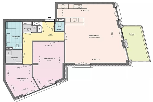 In dit driekamerappartement geniet je van alles wat het leven aangenaam maakt en kom je écht thuis. Zo heeft het appartement een volledig uitgeruste keuken van het merk Bruynzeel, witte hoogglans greeploze keukenkasten en een zwart composiet aanrechtblad. De keuken beschikt over een 4-pits inductiekookplaat, koel-vriescombinatie, vaatwasser, afzuigkap, een separate oven en magnetron. De badkamer is compleet afgewerkt en is voorzien van een inloopdouche, witte handdoekradiator en een dubbele wastafel met 2 kranen en spiegel. De vloertegels hebben een antraciet kleurstelling en de wandtegels zijn glanzend wit. Daarnaast is er nog een aparte betegelde toiletruimte aanwezig met toilet en fonteintje. Voldoende bergruimte is natuurlijk ook fijn. Daarom heeft het appartement een eigen separate berging en is er een algemene fietsenberging aanwezig in de kelder.