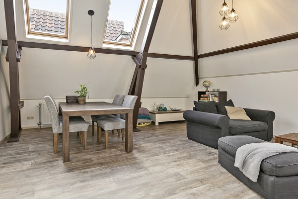 INDELING: De bovenwoning op de 2e verdieping: Hal/entree, wandafwerking vezelbehang, vloer afgewerkt met vinyl, plafond afgewerkt met spuitwerk; betegeld toilet met wandcloset en fonteintje; inpandige berging c.q. wasruimte met opstelplaats HR-combiketel; lichte woonkamer, wandafwerking vezelbehang, vloer afgewerkt met vinyl, smaakvol balkenplafond met deels stucwerk; open keuken, waarin geplaatst een hoek opgestelde inbouwkeuken, voorzien van alle gewenste inbouwapparatuur, wandafwerking vezelbehang en tegels, vloer afgewerkt met vinyl, balkenplafond en stucwerk; hoofdslaapkamer, wandafwerking vezelbehang, vloer afgewerkt met vinyl, plafond afgewerkt met spuitwerk; slaap-/hobbykamer, wandafwerking vezelbehang, vloer afgewerkt met vinyl, plafond afgewerkt met spuitwerk; betegeld badkamer (en-suite), voorzien van een douche en wastafel; gezamenlijk terras op de 1e verdieping.