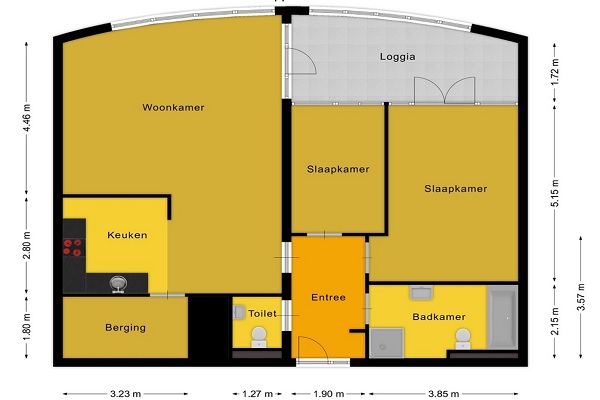 Indeling Begane grond: Entree, brievenbussen en videofoon installatie. Royale en luxe ontvangsthal met tegelvoer, veel lichtinval, twee liften en toegang tot het trappenhuis en de individuele bergingen. Berging/parkeren: Het appartement beschikt over een 2 eigen parkeerplaatsen en een afsluitbare berging. Op de eerste verdieping bevindt zich een sfeervolle lounge, een rustige ontmoetingsplek voor bewoners en bezoekers. Tevens vinden hier activiteiten plaats, die georganiseerd worden door de Vereniging van Eigenaren. Via de eerste verdieping is tevens het parkeerdek te bereiken met uw eigen parkeerplaats. Het parkeerdek is afgesloten middels een elektrische poort. Via lift bereikbaar portiek met toegang tot 3 appartementen. Hal met houten vloer en toegang tot de slaapkamers, badkamer, toilet en woonkamer. Gedeeltelijk betegelde toiletruimte met wandcloset en fonteintje. In lichte kleurstelling uitgevoerde, geheel betegelde badkamer voorzien van inloopdouche met thermostaatkraan, wastafel in wastafelmeubel. Royale slaapkamer I met houtenvloer-, welke via dubbele deuren toegang biedt tot de zonnige loggia. Ruime slaapkamer II, eveneens met houtenvloer- en toegang tot loggia. Open moderne keuken met keukenblok en voorzien van een granieten aanrechtblad, een keramische kookplaat, afzuigkap, combi magnetron en koelkast. Vanuit de keuken bereikt u de praktische inpandige berging met C.V.combiketel en wasmachine en droger aansluiting. Zeer royale en living met laminaatvloer en grote raampartijen dat zorgt voor veel lichtinval. De ruime woonkamer biedt een fraai uitzicht over het groen en toegang tot de loggia. Op het zuiden gelegen, ruime loggia met fraai uitzicht en uniek raamsysteem, welke als een harmonica in zijn geheel te openen is, waardoor de loggia in een handomdraai kan worden omgevormd tot een zonnig balkon. Als de raampartij gesloten is vormt de loggia een fraaie aanvulling op de living en de slaapkamers.