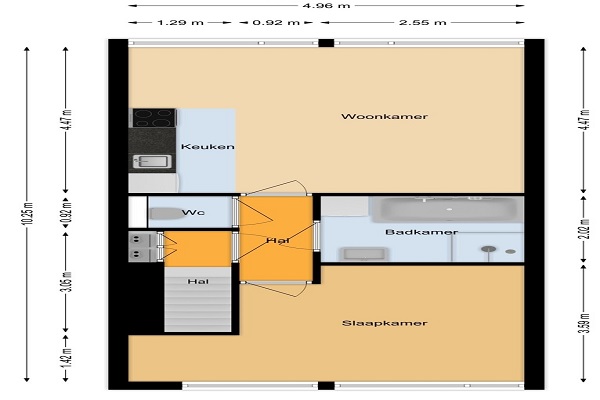 Indeling Gezamenlijke entree met bellentableau, brievenbussen en trapopgang naar de 1e verdieping. Via de galerij loopt u naar de gezamenlijke entree voor een tweetal appartementen. Eén op de eerste verdieping en één op de tweede verdieping. De gezamenlijke hal is voorzien van eigen meterkast, cv opstelling en internetmodem. Tevens kunt u vanuit de galerij naar de gezamenlijke berging en de afgesloten parkeergarage in de kelder. Vanuit uw eigen voordeur treedt u de hal binnen welke toegang geeft tot de woonkamer, de slaapkamer en badkamer. Vanuit de hal hebt u ook toegang tot de deels betegelde toiletruimte met zwevend closet. Het gehele appartement is voorzien van luxe donker houten pvc vloer. De woonkamer en eethoek is volledig ingericht en voorzien van smart tv, internet en strakke wand- en plafondafwerking. Tevens geniet de woonkamer van veel lichtinval middels de grote raampartijen en vrij uitzicht. De moderne en luxe open keuken is van alle gemakken voorzien. Namelijk een 4-pits gaskookplaat, RVS afzuigkap, combimagnetron, koelkast met vriesvak lades, vaatwasser en alle inventaris die u nodig hebt in de keuken. De ruime slaapkamer met luxe tweepersoons boxspring, ruime kledingkast en een strakke wand- en plafondafwerking en een ruimte voor een werkplek. De slaapkamer met hoge raampartij zorgt voor veel lichtinval in deze ruimte. De geheel betegelde moderne badkamer is uitgerust met een regendouche en handdouche met thermostaatkraan, vaste wastafel met lades, wandkast, ligbad, designradiator en wasmachine. In de parkeerkelder beschikt u over een eigen parkeerplaats afgesloten door een elektrische deur. Tevens hebt u een zeer ruime berging welke u deelt met appartement.
