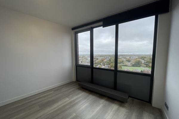 Dit goed onderhouden appartement beschikt over een ruime woonkamer met grote ramen die zorgen voor veel natuurlijk licht en een prachtig uitzicht bieden over de skyline. De moderne keuken is van alle gemakken voorzien en naadloos geïntegreerd in de woonkamer, waardoor het een perfecte plek is om te koken en gasten te ontvangen. Er zijn twee slaapkamers: de eerste is een royale hoofdslaapkamer met directe toegang tot het balkon, terwijl de tweede slaapkamer iets kleiner is en een praktische inloopruimte heeft. De badkamer is modern en voorzien van hoogwaardige voorzieningen, en het aparte toilet zorgt voor extra gemak. Het hoogtepunt van dit appartement is het grote balkon, een perfecte buitenruimte om te genieten van het prachtige uitzicht over de stad. -Niet beschikbaar voor studenten