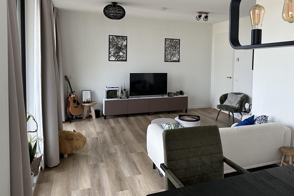 Indeling Bij binnenkomst tref je een ruime hal die toegang biedt tot alle vertrekken. De lichte slaapkamer heeft voldoende ruimte voor een tweepersoonsbed en kledingkast, en geeft directe zicht over de achterkant van de stad en toegang tot het grote zonneterras. De woonkamer is ruim en licht dankzij de grote raampartijen, en heeft een open keuken die van alle gemakken is voorzien: een inductiekookplaat, afzuigkap, oven, koel-vriescombinatie en vaatwasser. Vanuit de woonkamer is er eveneens toegang tot het grote 1e balkon, waar je kunt genieten van de levendige omgeving. Het appartement heeft een comfortabele indeling en is volledig instapklaar en volledig gemeubileerd. De moderne badkamer is uitgerust met een inloopdouche, wastafelmeubel. Daarnaast is er een apart toilet en een aparte wasruimte met opstelplaats voor wasmachine en droger.