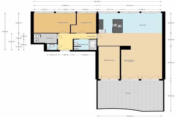 INDELING Op de begane grond treft u de hoofdentree met bellentableau en brievenbussen. Entree; vanuit de hal heb je toegang tot de living, 2 slaapkamers, de badkamer en het separate toilet. De living van bijna 13 meter diepte bestaat uit een zitkamer, een grote woonkeuken en toegang tot de derde slaapkamer. Het leefgedeelte ( 6.42m x 3.80m) is ruim en licht en de dubbele deuren geeft toegang tot een groot terras (circa 37 m2, noordwesten) gelegen aan een rustig plein in het complex. In de living vind je achterin de ruime woonkeuken. De keuken (6mx6m) is voorzien van inbouwspotjes en een net keukenblok. Hier vind je diverse inbouwapparatuur, waaronder een koelkast en vriezer, vaatwasser, oven, 6-pits gaskookplaat met afzuigkap. Ook is er meer dan voldoende bergruimte in de verschillende kastjes en lades. De woonkeuken is over de hele breedte voorzien van openslaande ramen met Franse balkons met prachtig uitzicht over de Maas, de Willemsbrug en de skyline van Rotterdam. Vanaf de overloop bereik je de twee slaapkamers en de badkamer. Beide slaapkamer zijn heerlijk licht en ruim met een fantastische uitzicht over de Maas, de Hefbrug en het Unilever kantoor. De badkamer (2.50mx2m) heeft een separaat ligbad, douche en een wastafel. Verder is vanaf de overloop een separaat toilet met fonteintje en de berging met een cv-installatie en wasmachine