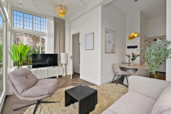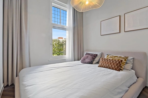 Dit heerlijke appartement is gelegen op de begane grond. De entree is bereikbaar via de centrale voordeur van het indrukwekkende gebouw. Voordeur met hal. Toegang tot de keuken, welke van alle gemakken is voorzien, denk aan een vaatwasser, een inductie kookplaat, een koelvriescombinatie, een Quooker voor direct kokend water en voldoende kastruimte. Via de keuken toegang tot de schitterende badkamer met ligbad, inloopdouche, wastafel met meubel, spiegel met verlichting en verwarming en twee handdoek radiatoren. Separaat toilet in dezelfde stijl als de badkamer. De keuken loopt over naar de fenomenaal gerenoveerde woon-eetkamer met visgraat vloer, met dubbel openslaande deuren naar het ruime terras. Via de woonkamer is de ruime slaapkamer te bereiken (ca. 8m2). De woning is door de plafondhoogte en raampartijen licht en luxe. Ruime achtertuin van ca. 30m2 gelegen op het oosten. De plafondhoogte in dit appartement is maar liefst 3.7m!