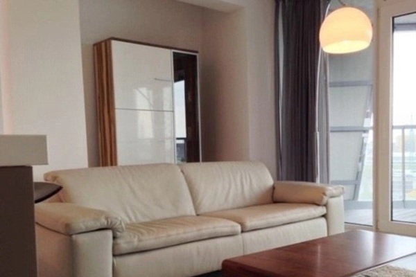 Indeling: De woonkamer, die baadt in natuurlijk licht door de grote ramen, is voorzien van een lichte laminaatvloer. De open keuken, in een lichte kleurstelling, is uitgerust met een magnetron, elektrische kookplaat, afzuigkap en een praktische ontbijtbar. Slaapkamer I is ingericht met een tweepersoonsbed, een linnenkast en biedt toegang tot het balkon. Slaapkamer II beschikt over een bed en een bureau. De moderne badkamer is voorzien van een ruime inloopdouche, een stijlvol wastafelmeubel, een designradiator en een spiegel. Daarnaast is er in het gebouw een fitnessruimte waar bewoners gebruik van kunnen maken.