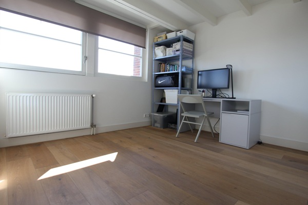 Indeling Via het gemeenschappelijke trappenhuis toegang tot het appartement op de 2e verdieping. Eigen entree, hal met aansluitend een open trap naar de ruime woonkamer en keuken. Door de grote ramen aan beide zijden is dit een heerlijke zonovergoten verdieping (ca. 50m²) met veel lichtinval. De luxe open keuken met kookeiland is volledig uitgerust met inbouwapparatuur zoals een vaatwasser, oven/magnetron, koel-vriescombinatie en gasfornuis. Vanuit hier heeft u een prachtig uitzicht over de ecologische gemeenschappelijke tuin. Het balkon is voorzien van een kast voor bergruimte. Tussen de woonkamer en keuken bevindt zich een apart toilet. De open trap in de woonkamer leidt naar de tweede verdieping van het appartement. Via de overloop bereikt u het fantastische dakterras met prachtig uitzicht over Amsterdam, 3 slaapkamers en de luxe badkamer. De badkamer is voorzien van een ligbad, regendouche, 2e toilet, dubbele wastafel, handdoekradiator, nieuwe wasmachine en droger en een dakraam dat veel lichtinval geeft. Niet geschikt om te delen Niet geschikt voor studenten