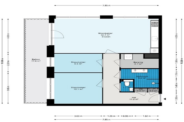 Het appartement heeft een oppervlakte van circa 70 m2. Vanuit de hal zijn alle vertrekken van de woning te bereiken. De woonkamer met open keuken heft een oppervlakte van circa 33 m2 en is voorzien van alle benodigde inbouwapparatuur zoals een kookplaat, combi oven/magnetron, afzuigkap, koelkast, vriezer en een vaatwasser. Vanuit de woonkamer is toegang naar het ruime balkon van circa 18 m2. De twee slaapkamers hebben een oppervlakte van circa 13 en 8 m2. De badkamer is uitgerust met een inloopdouche, wastafel met dubbele kranen en handdoekradiator. Daarnaast beschikt het appartement over een inpandige berging met wasmachine aansluiting en een separaat toilet. Het appartement wordt opgeleverd met PVC vloer en witte wandafwerking. –Niet mogelijk voor studenten om te huren