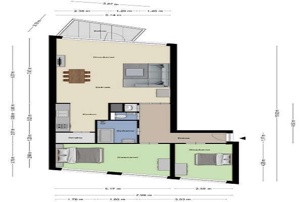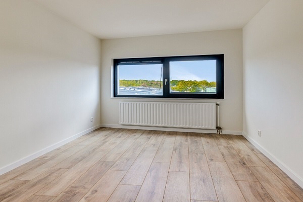 Het appartement beschikt over twee slaapkamers: een ruime hoofdslaapkamer van ca. 15 m² en een tweede kamer van ca. 10 m², ideaal als kinderkamer, werkkamer of logeerkamer. De moderne badkamer is centraal gelegen en uitgerust met een ligbad, aparte douche, wastafel en handdoekradiator. Het toilet is separaat. Daarnaast is er een inpandige aansluiting voor de wasmachine en een externe berging voor extra opbergruimte. Het appartement is smaakvol afgewerkt met een laminaatvloer, nette wanden en moderne verlichting