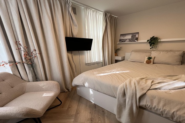 De woning is recent compleet verbouwd en ademt luxe en sfeer. Met een open woonkeuken, twee ruime slaapkamers, een stijlvolle badkamer met royale douche, apart toilet en een grote tuin is dit de ideale plek voor wie van comfortabel wonen houdt. Begane-grond appartement Twee ruime slaapkamers Luxe badkamer met inloopdouche Modern apart toilet Open woonkeuken met alle gemakken Grote zonnige tuin – perfect om te ontspannen of gezellig te barbecueën